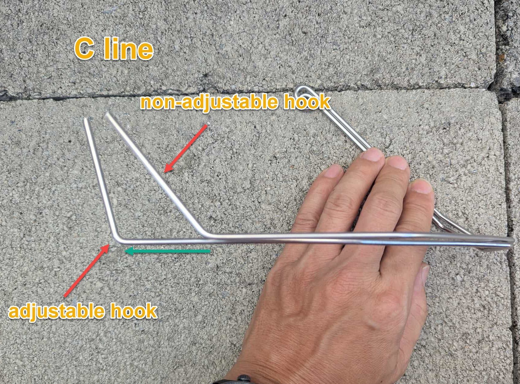 調整式フックと非調整式フックのブラケット穴の位置が若干異なるため、