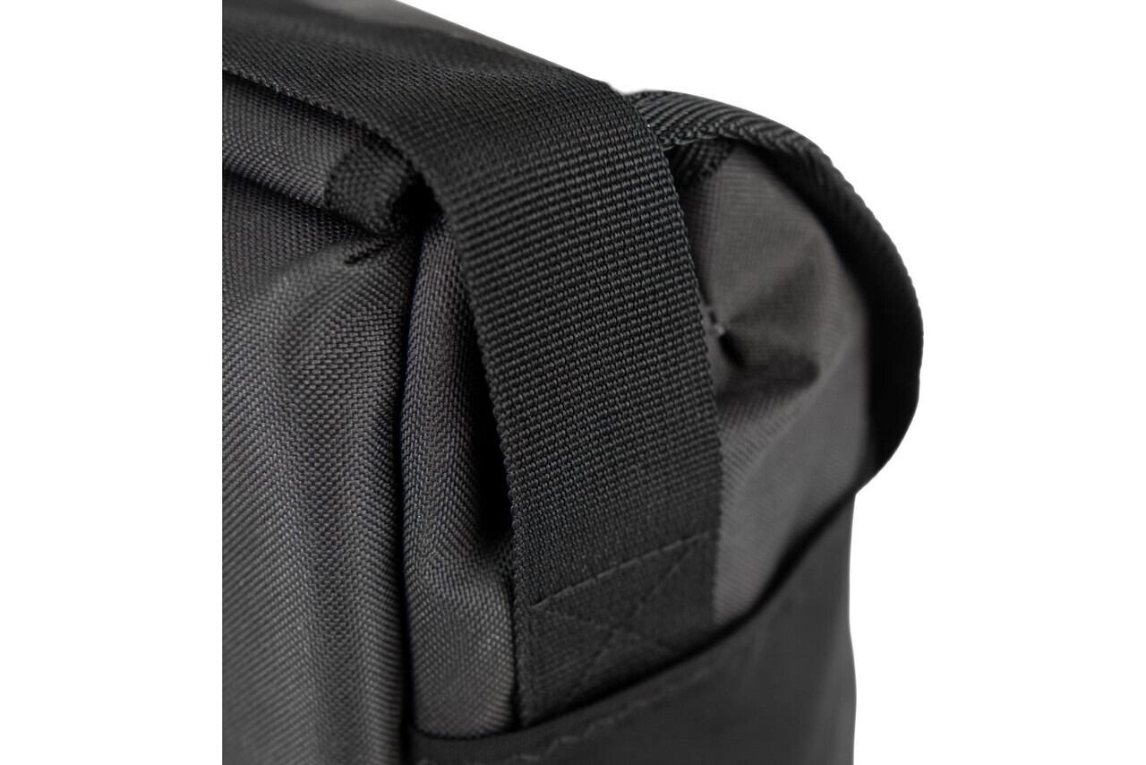 パソコン用のパッドを備え、前面には人目につかないフラップポケットなど、通勤に適しています。プラスチックボトルをリサイクルした耐久性のある生地を使用し、表面はワックスの撥水加工を施しています。シンプルなデザインながら、機能的なバッグです。