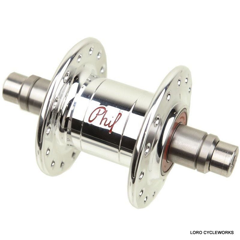 回転が良く高い耐久性を誇るアメリカブランドPhilwood(フィルウッド)の高性能フロントハブ。Philwoodは世界初のシールドベアリングハブを作ったメーカーでもあります。