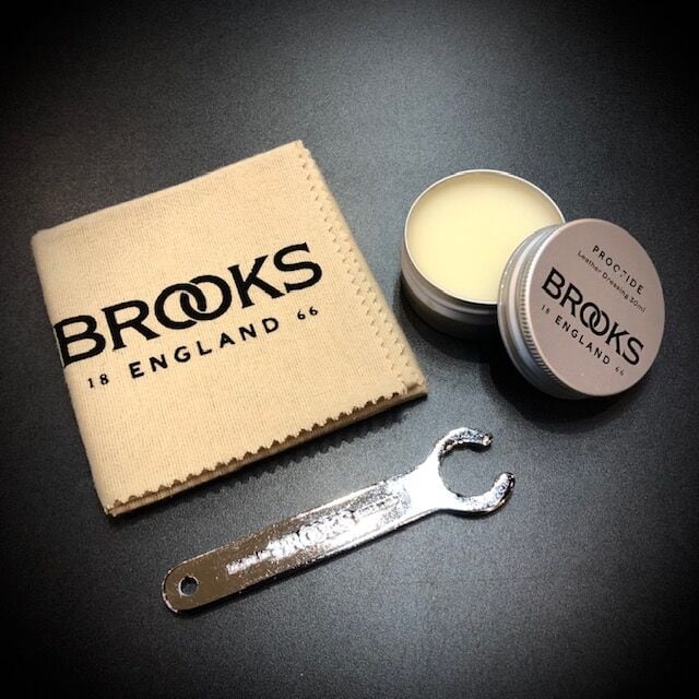 PROOFIDEサドルケアオイルとウエス、SWALLOW TITANIUMとSWIFT TITANIUM以外のモデルに適合するスパナとメンテナンスリーフレット(英文)がセットになっています。