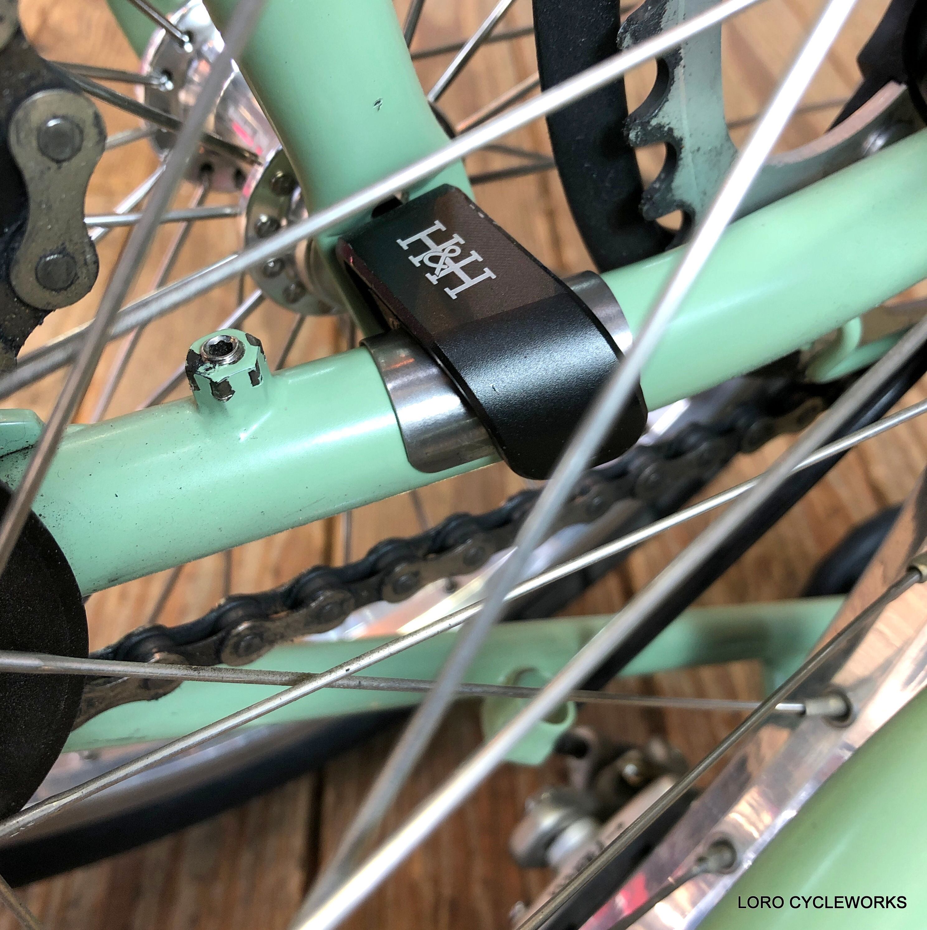 BROMPTONを折りたたんだ際にフロントフックが引っかかるリアフレームに貼るキズ防止のプロテクター。