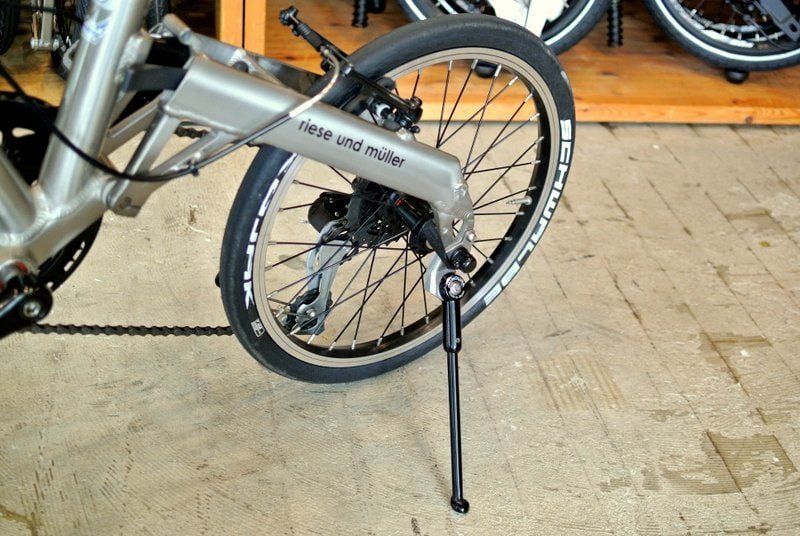 ミノウラ製、18インチ用のキックスタンド。 Birdy Classic/旧BD-1に取り付け可能です。 (新型Birdy Monocoqueには取り付け出来ません) リヤホイールのクイックレバーとフレームに挟み込んで装着し、3mmの6角レンチで固定します。