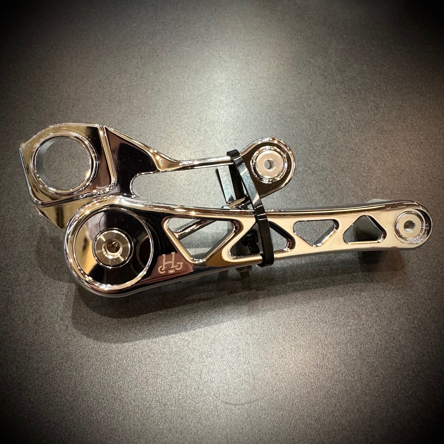 バージョン3、【★メッキ加工品★】 Brompton外装2段変速、6段変速(内装3段/外装2段)モデルや、外装多段可カスタム(4速迄)に対応したチェーンテンショナー☆ 素材:アルミ 重量:90g ※本体とボルト&スペーサーのセット ※プーリーは付属しておりません