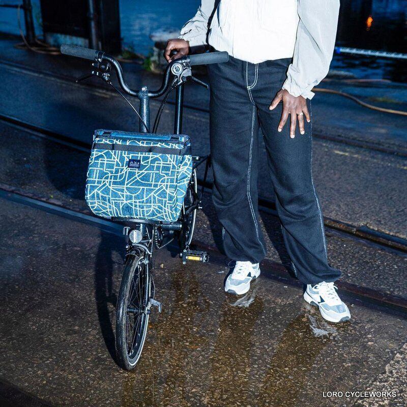 Journey Lines(ジャーニーライン)パターンは都市の地図とそのネットワークをベースとしたデザインになっています。ニューヨーク市の幾何学的な格子から、ロンドンのビクトリア朝の街路の混沌とした秩序まで、すべてのラインがブロンプトン自転車での喜びと発見の瞬間を表現しています。リバーブルーのベース生地にキングフィッシャーブルーの縁をあしらうデザインは、都市の中心部を流れる自然の水路からインスピレーションを得ています。シルバーのリフレクティブジャーニーラインプリントが夜の光の下で輝きます。