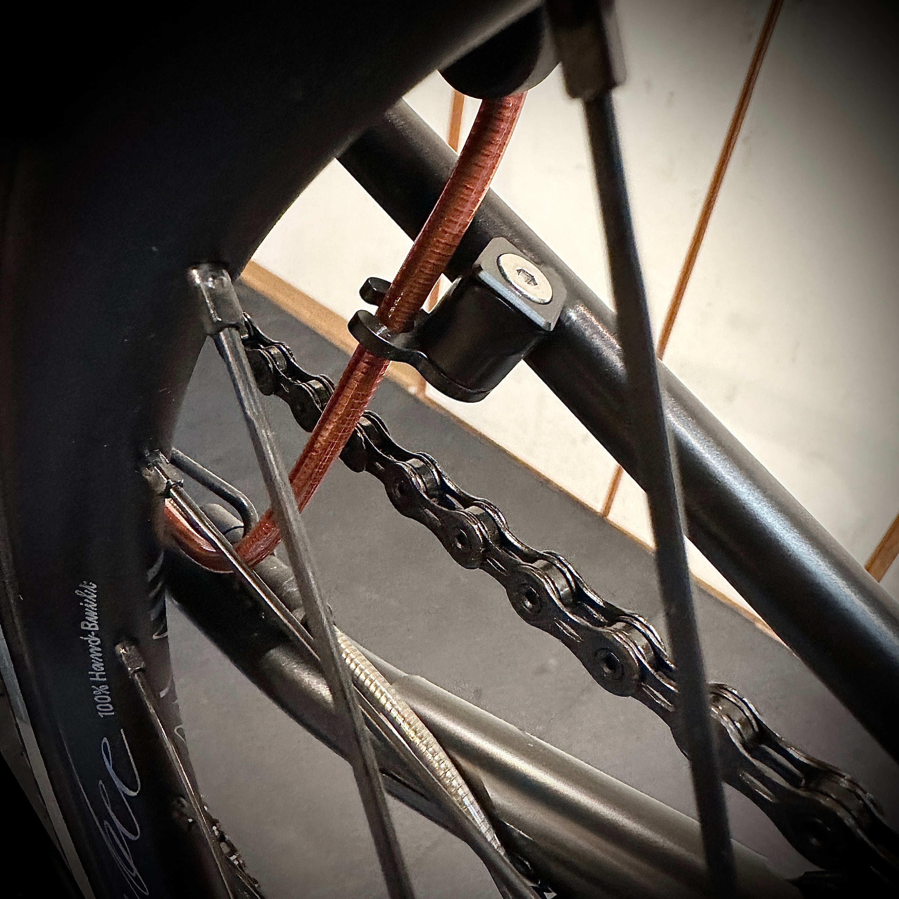 Brompton外装7速化をした際には必須のアイテム! ロー側に入れたチェーンとリアブレーキケーブルの干渉を、 ケーブルに負荷をかけずに、綺麗にかわしてくれます☆